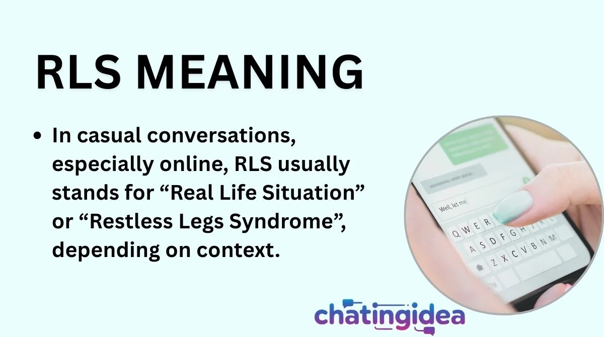 In casual conversations, especially online, RLS usually stands for “Real Life Situation” or “Restless Legs Syndrome”, depending on context.
